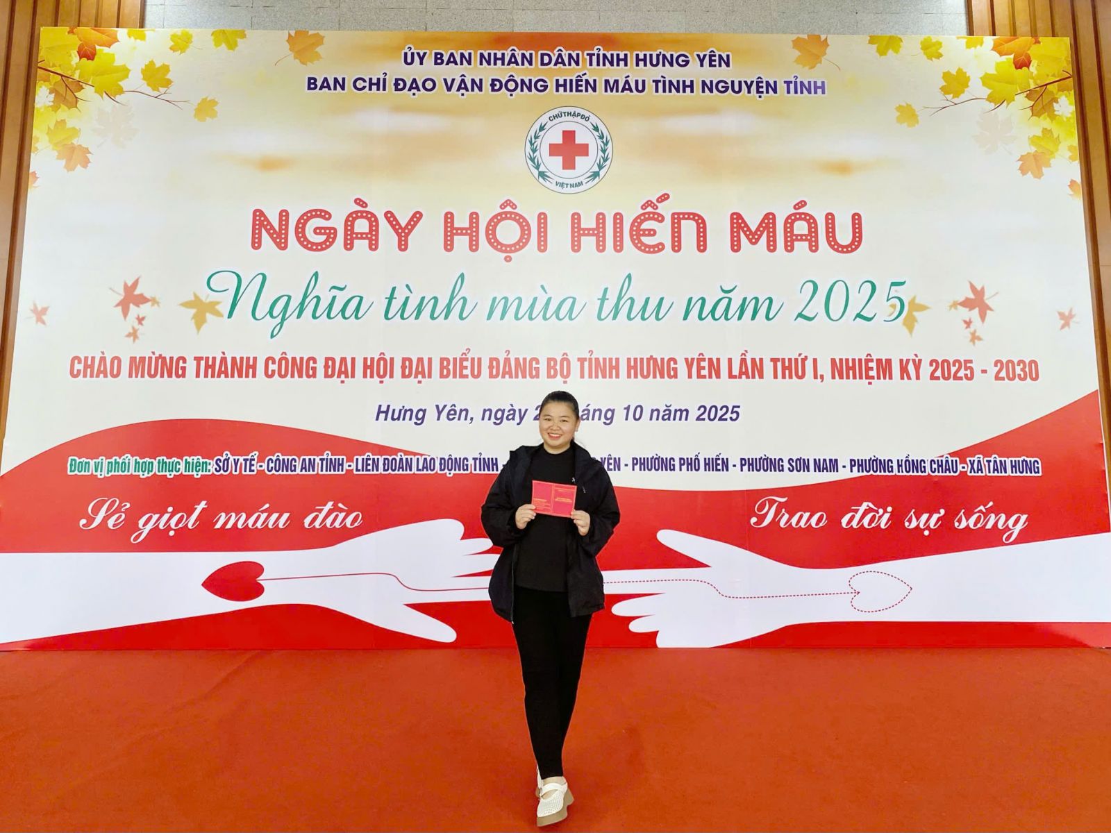 Vừa qua, trong khuôn khổ Ngày hội Hiến máu Nhân đạo "Nghĩa tình mùa thu năm 2025" được tổ chức vào ngày 24/10/2025 tại Trung tâm hội nghị phường Phố Hiến, nhiều cán bộ, giáo viên của nhà trường đã tạm gác lại công việc, hăng hái có mặt từ sớm để đăng ký tham gia hiến máu