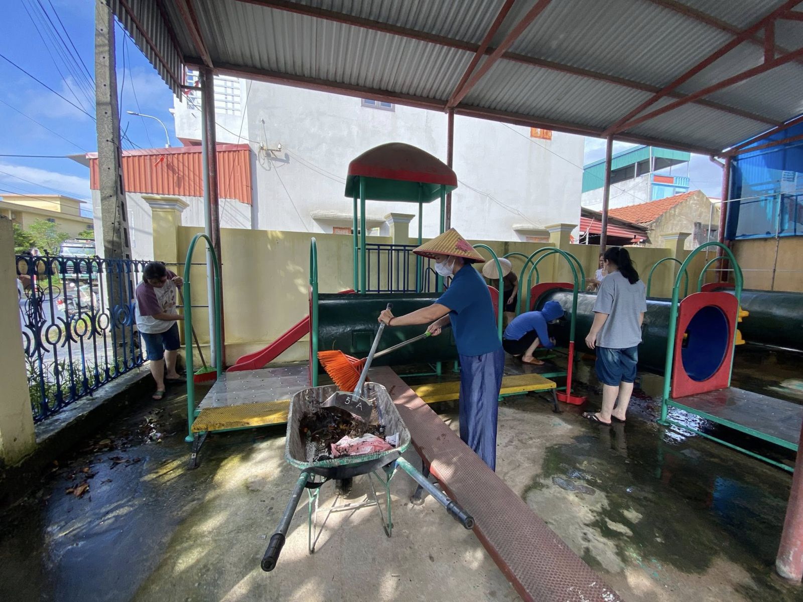 • Lau chùi đồ dùng, đồ chơi, khử khuẩn phòng học, nhà vệ sinh để đảm bảo an toàn vệ sinh trước khi đón trẻ trở lại trường.